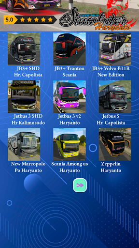 Há muitas opções de opções de Modelos Mod atraentes de simulador de ônibus de libré. Há um simulador de ônibus de libré da ORI, mas ainda é legal. Depois, há o simulador de ônibus de libré Indonesia HD, SHD, SDD, que é frequentemente encontrado nas ruas. Em seguida, o turismo de simulador de ônibus de libré com uma aparência legal. Em seguida, simulador de ônibus de libré SR2 XHD com um design atraente. Em seguida, simulador de ônibus de libré Bire 6. e, finalmente, os hits do simulador de ônibus de libré que é divertido de jogar. Este aplicativo também fornece libré de ônibus da Indonésia Simulador com design atraente de adesivos. O mais legal há um elegante simulador de ônibus da Indonésia Puppet Simulator. Depois, há o simulador de ônibus da Liga 1 da Indonésia para fãs de futebol. Depois, há o simulador de ônibus do simulador de anime indonésio para fãs de anime. Em seguida, a pintura suja de ônibus para um design mais memorável. Há também o simulador de barramento de libré Indonésia Jetbus 3 com os modelos mais recentes. Além da pintura completa do Hariyanto Bus, também temos outros mods de ônibus famosos, como o pindawa 87 Viário de ônibus de dois andares. Há também os modelos de libré de ônibus Pandawa 87 HD e Shd que parecem mais elegantes. Em seguida, o uniforme do JB3 Shd Bus é hits. Há também o libré JB3 ZTOM Bus com o design mais recente. Também temos uma pintura de ônibus Strobo Full Strobo. HD V2. Em seguida, adesivos charmosos da pintura de barramento de adesivos Als Als Als. Depois, há a pintura Arjuna XHD Bus com muitas opções de cores. Há também um simulador rápido de barramento de simulador EKA que geralmente é Seliweran em Java e o simulador de ônibus de libré Gunung Harta.