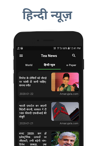 Tea News is a free news app. Enjoy your morning tea with Tea News.This app includes news headlines,Business news,Sport news,Tech news,Science news,Entertainment news Health, World news & Hindi and English E-Papers,latest India news.