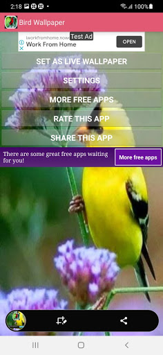 This application is live wallpaper application. In this application user can change live wallpaper. User can select background image of Bird from application setting. Also user can choose image from gallery as set as a live wallpaper.
