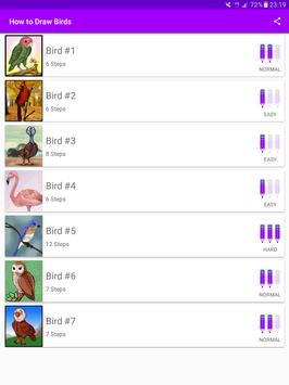 Our App provides a step by step instructions covering a large collection of drawings including: Bald Eagle, Lovebird, Cardinal, Flamingos, Bluebird, Owls, Eagles, Baby Birds, Hummingbird, Pigeons and Doves.