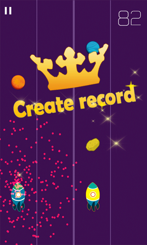 Operation instructions: to control the small rockets on the left and right sides in a sensitive shuttle between meteorites, avoid obstacles, and get potatoes to survive longer! Come and compete with your friends! Let’s go!!!