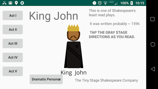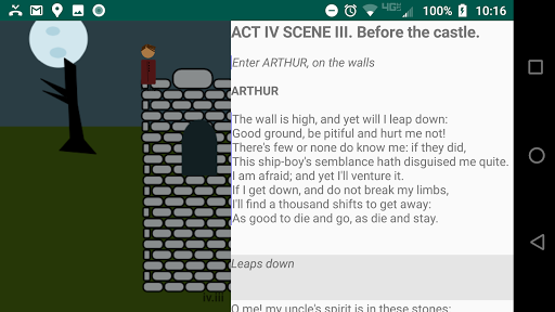 Read the play NO ONE has read! The play's the thing! As you read the play, tap the stage directions and see the little players make their entrances and exits. Helps keeps track of who is on stage. There is very little animation, so as not to distract from the words, which are what really matter. These actors have very limited range, but they stay in place and set the scene while you read. No Ads. Does not any phone services.