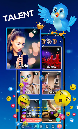 Do you find it difficult to display your talent and art where you live? Come then to Gossip Bird An interactive live group Voice application where you may share your talent and display it to someone who has similar talents and intreset like singing, poetry etc .
