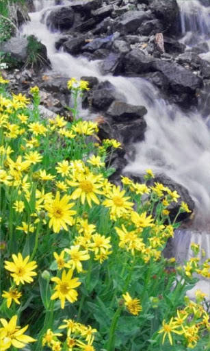 Flowers and waterfall live wallpaper
