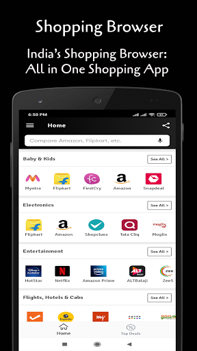 Instantly use Flipkart, Amazon, Myntra, Snapdeal, Shopclues & more top Indian shopping sites. Use super search to shop across all Online Shopping website with a single click Here in Shopping Browser App.