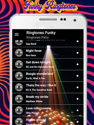 Our Funky Ringtones app is an app with many melodies that plays all kinds of sounds from the funkiest to the most disco style. You can set the ring tones as default ring tones, alarm rings or SMS notification tones.
