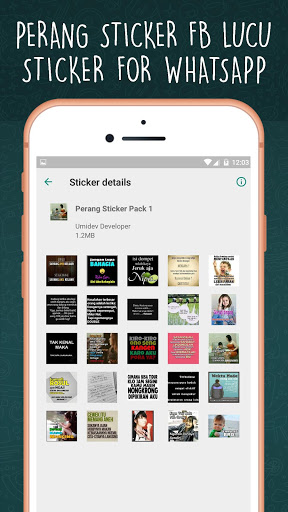 Perang sticker lucu Ngakak FB untuk WAStickerApps terbaru ini lucu dan keren dari berbagai macam kata kata untuk guyonan anda, meliputi update status,chat watshap,facebook,dan lain lain. Dijamin bakal bikin ngakak. selain itu dapat anda bikin menjadi gambar lucu dan meme untuk dp sosial media.