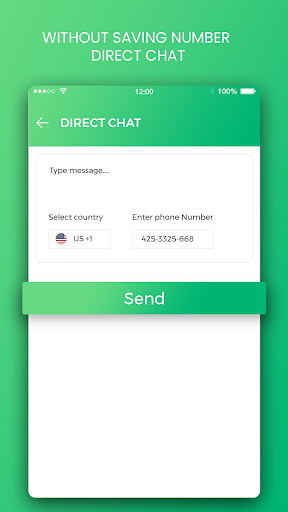 Direct chat: You can Write Numbers and send messages to unsaved numbers that is not saved in your contacts list. Chat Directly with anyone without saving Numbers to your contacts for WhatsApp chats and messages.