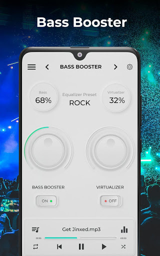 - Adjusts excellently sound volume with bass booster and virtualizer effect.