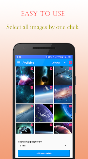 Wallpaper Changer Pro is going to give you a really unique and novel wallpaper style. You can select multiple photos in gallery easily and setting them as wallpaper at the same time. Now your smartphone will be not monotonous with a unique background anymore but It will always be changed and refreshed.