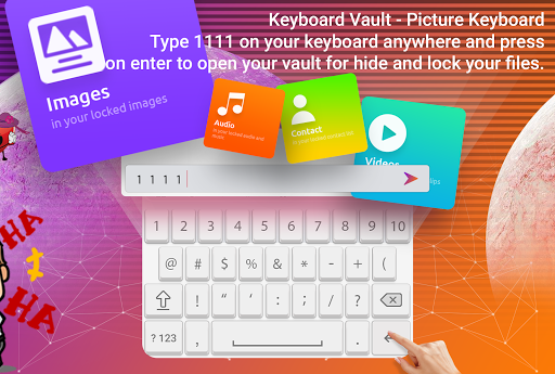 Picture Keyboard Vault is a best privacy protection app to keep safe & easily hide your private photos, videos & any other files that you do not want others to see on your device. This Vault is a fantastic privacy protection app to easily hide and encrypt your photos, videos and any other files that you do not want others to see in Photo Locker.