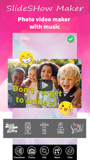 Simple yet powerful, Slideshow maker makes it easy to create fully customized, Photo video maker with music on your Phone. Pick your photos Add your favourite music from your music collection. Make your own slideshow in just a few taps choosing from a great mood collection. theme, frames, Transition, emoji over video, add text over video,add background to your images and more.