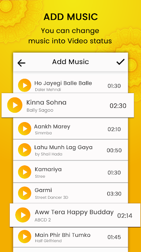 MV Video Status Maker has large lyrical video song library you can select your favorite audio and create one romantic song in 2-3 minute