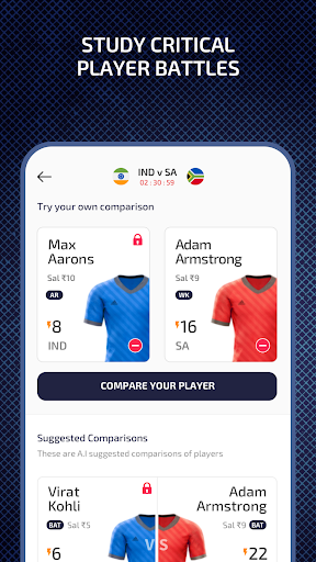 H2H Comparisons : Study key player battles across various fantasy cricket stats and metrics to see who can help you select the best player in team