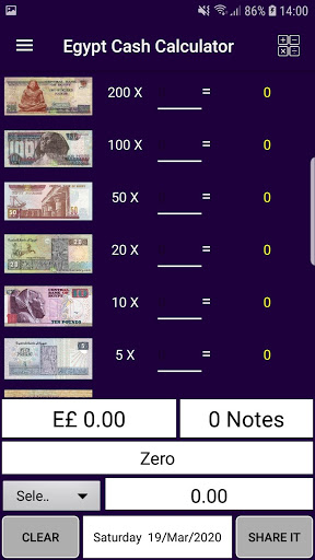 Only For Egyptian Pound currency denominations, Egyptian Easy Cash Calculator Plus and Counter, Save daily database. Total of all Notes in the digit.