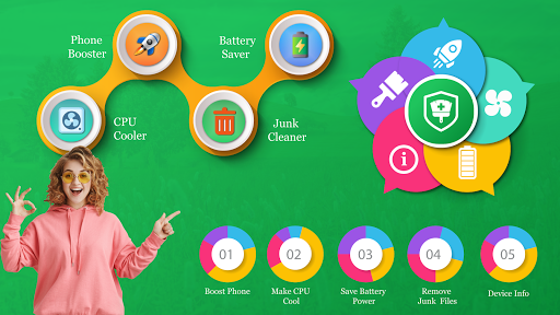 tool for android phone which will clean your phone from junk files, boost the phone for games, remove necessary files, and clean memory. Via Battery Optimizer / CPU Cooler, you can easily optimize your battery and cool down the CPU.