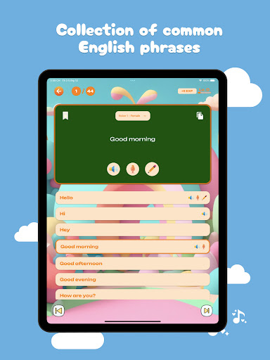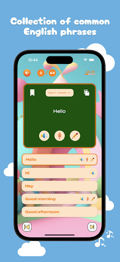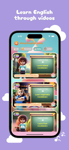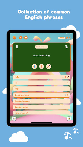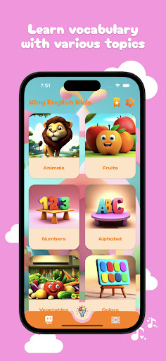 With the vocabulary learning feature, children can explore new words through vibrant images and lively sounds. The app offers a wide range of topics such as animals, colors, numbers, toys, and more. Children will listen to and see English words, along with their pronunciation and meanings. This helps children build a strong vocabulary foundation from an early age.