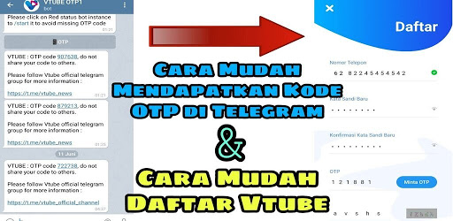 Note! : Jika kalian tidak bisa meminta otp (ada peringatan error), kalian bisa minta OTP lewat aplikasi Telegram (Download di playstore , cari “Telegram”), kalo sudah download silahkan daftar telegram memakai nomor yang digunakan di vtube, harus sama