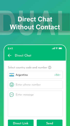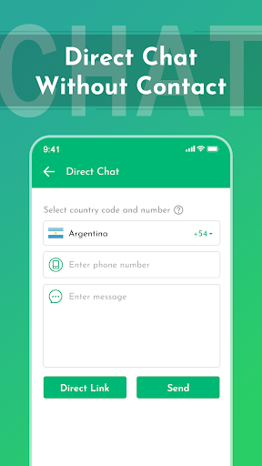 Want to send a message but find out he's not in your contacts? With Direct Chat, you can directly send messages on WhatsApp or WhatsApp Business without adding contacts.