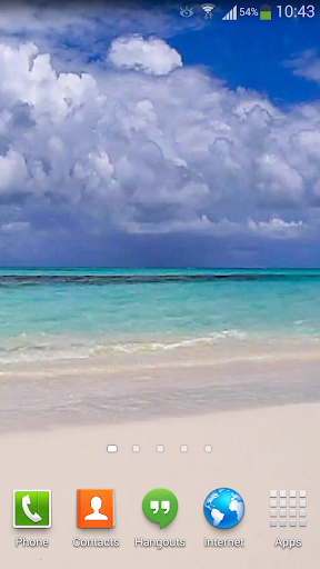 This is a HD Live Wallpaper with small ocean waves flowing gently back and forth right on your screen with amazing ocean waves flowing in an exotic place in a blue lagoon with amazing beach with sand, shells and clouds above the ocean, with beautiful blue sky.