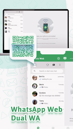 - Dual Chat Functionality: Manage two distinct accounts on the same device, such as personal and business. The QR code login process allows for swift and hassle-free switching between WA accounts.