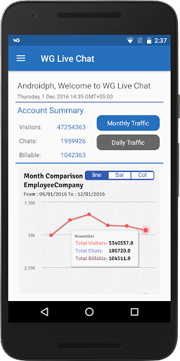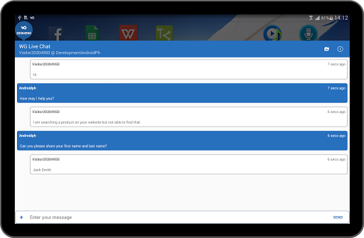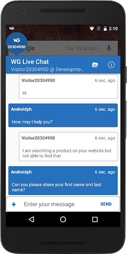 WG Live Chat Software is an instant and hassle-free way for businesses to connect with online shoppers without any fuss or lengthy wait-times. WG Live Chat Software legitimately stacks up against real-life customer service with which customers can be greeted and assisted just like in a brick-and-mortar store. Responses through email or phone call are mostly laggard and entail lengthy waits, but with WG live chat software application, you can be available 24/7 to assist customers with their queries from your android cellphone. The fact of the matter is that online customers run into dead-end all the time while scouring web for a decent purchase and you can’t sit in front of your laptop or desktop all the time to assist online customers. The number of buyers can easily plummet if there is a lack of assistance on company’s website. However, WG Live Chat Software app allows customers’ a quick-access to you for instant solutions with just a few keystrokes from your android mobile phone.