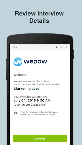 Download the free Wepow Live app and access your Live Video Interview from your mobile device.
