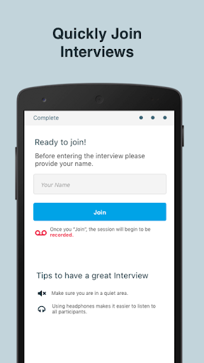 After downloading the app, simply click on the interview link provided in your email invitation, test your device and you will be ready to join your live video interview.