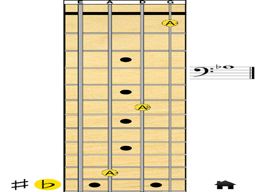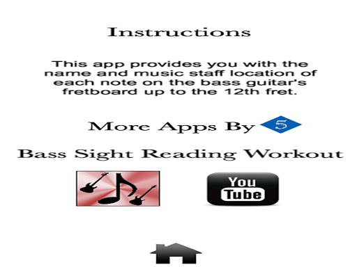 The Bass Note Legend Application provides you with the name and music staff location of each note on the bass guitar's fretboard up to the 12th fret.