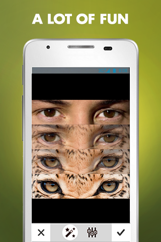 Awesome app that reveals your true nature! Create great collages with Animal Eyes! Plus: Tons of effects Tons of stickers Ability to adjust an existing picture. Enjoy!