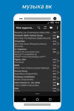 Наше приложение Скачать музыка ВК позволяет напрямую воспроизводить ваши аудиозаписи vk или находить любые по вашему вкусу и скачать нужные треки в мп3.Вы сможете сохранить понравившуюсю музыка vk на мобильное устройство и слушать ваши любимые мелодии,когда где вам удобно!Любимые песни,хиты,новинки,исполнители,треки,альбомы будут доступны вам в любое время.У приложения широкий функционал и простой,понятный,удобный интерфейс.