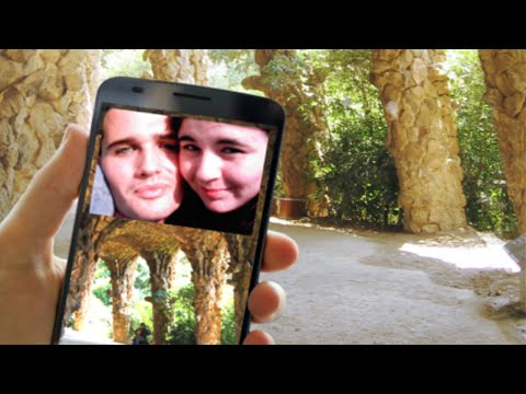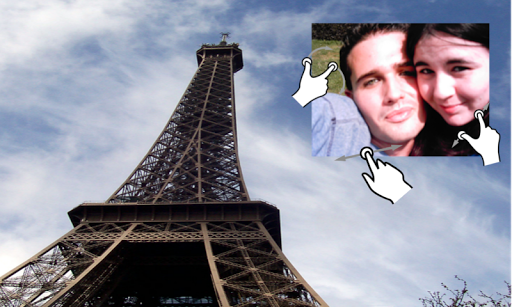 Take a picture of a landscape or friends and family, select the type of composition for the picture, take a selfie and share the two photos in one image.