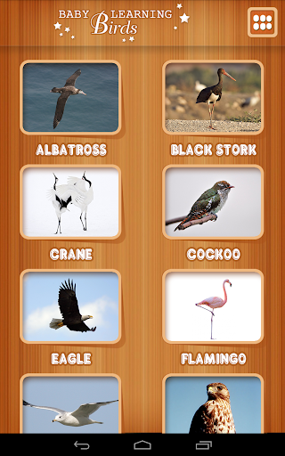 Baby learning Birds is a flash card game, help your children learn & record many birds. It includes the pictures, bird name's sounds. Baby can easy learning from the cards. It suitable for 0 - 5 years old baby. Compatible with most devices.