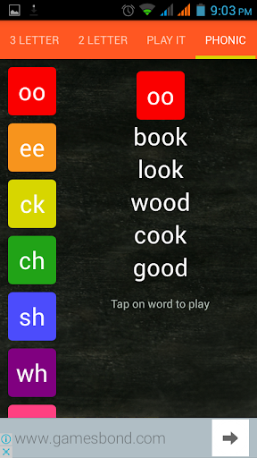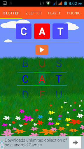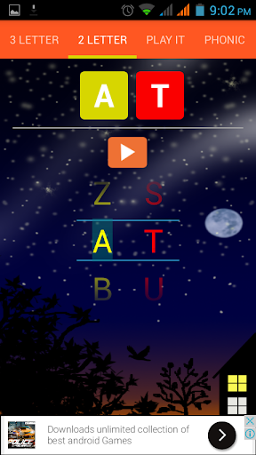 This app is built to lean two letter words,three letter words,phonic sounds. Also kids can play letter guessing game where they can practice letterers for some useful three letter words.