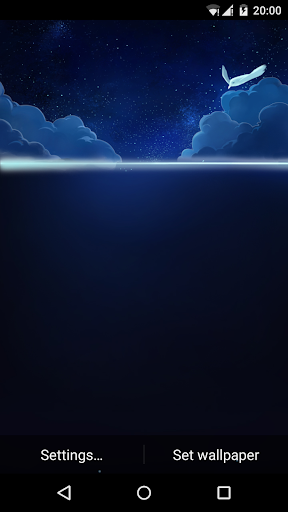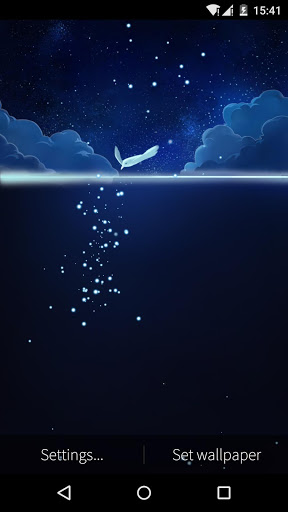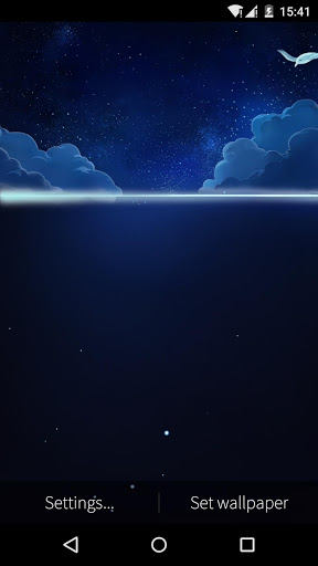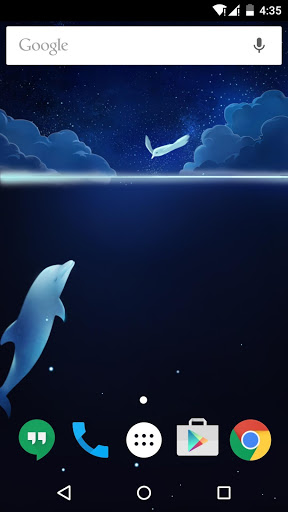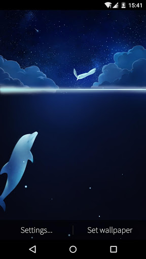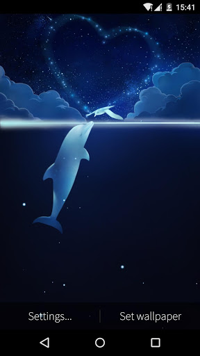 live wallpaper tells us a touching and romantic love story of a cute dolphin and a courageous bird falling in love with each other though they are so different from each other. Every day when the night falls, the bird flies to the sea with his winds hovering close to the water, waiting for his love to come. And today he is doing the same thing again at such a beautiful starry night.