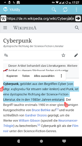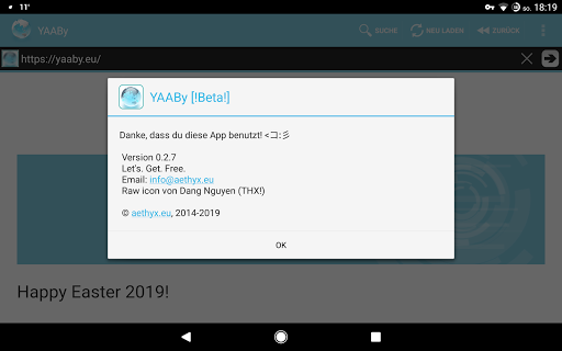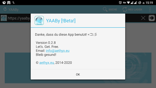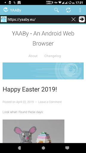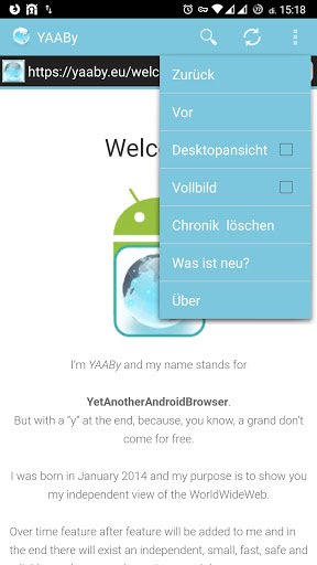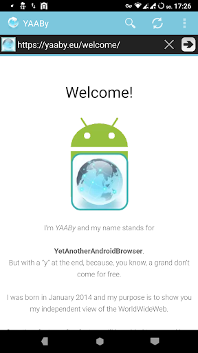 Hello! My name is YAABy. In the eyes of society I need to be in jail. For the choice of herbs I inhale. My name stands for YetAnotherAndroidBrowser. With a little "y" at the end, because I am still very small. Despite that my inventor found I needed to stand out from the pack, so.