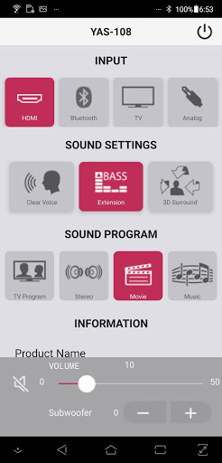 The Sound Bar Remote app provides easy operation for select Yamaha Sound Bars using your Android device.