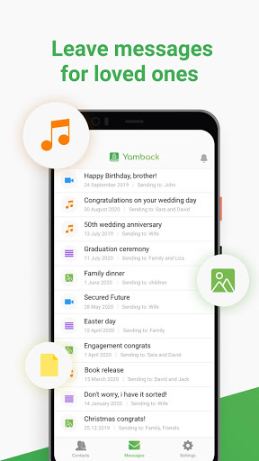 Use Yamback for future messages, and stocking up the right set of wishes, deep hidden secrets and information with future birthday, wedding, and graduation greeting for your kids or spouses.