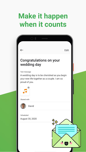 - Send pre set messages to loved ones on birthdays, anniversaries, graduations
