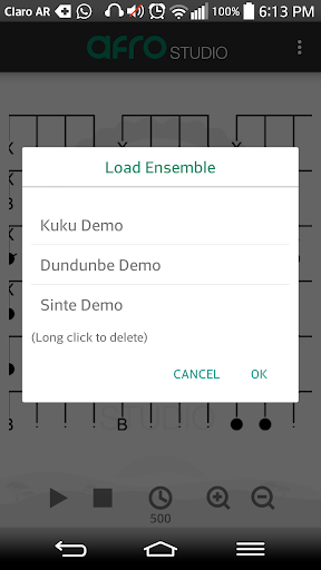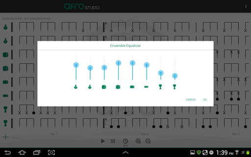 Finally, the experienced musician can take advantage of Afro Studio to compose and get the feeling of complex musical structures and phrases to later play in the real ensemble. Also, since African drum rhythms are mainly transmitted by word of mouth, keeping them safe and stored in Afro Studio can help to mantain the tradition. I have been using this tool this way with great benefit and now I intend to share this with the rest of the African music community. Hope you can enjoy it too :)