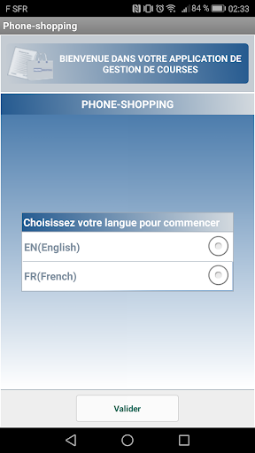 Phone shopping est conçue pour fonctionner à partir de la version 2.2.1 d’Android et les versions supérieures. Elle existe en Français et en Anglais.