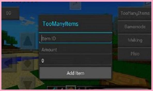Too Many Items – is a well-known system of issuing blocks and items. This mod was popular on the earlier versions of MCPE before it was replaced by the Toolbox.