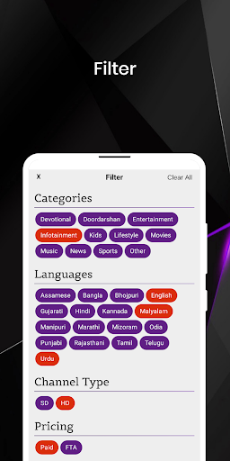 ★Categories→ Devotional, Doordarshan, Entertainment, Infotainment, Kids, Lifestyle, Movies, Music, News, Sports, Other