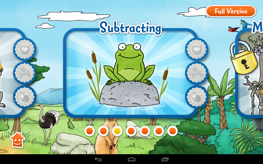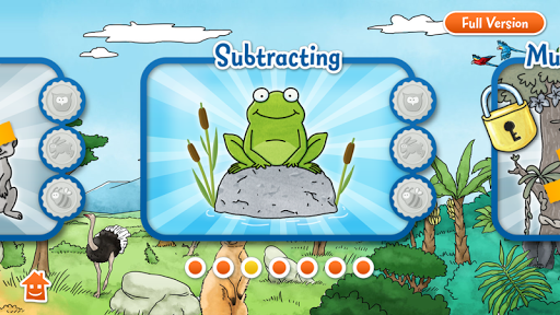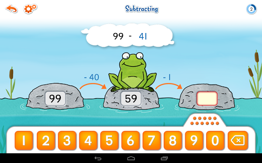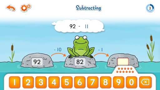 The frog needs help to get across the river. Every correct answer brings him to the next stone until he finally reaches the riverbank on the opposite side.