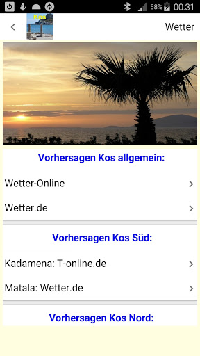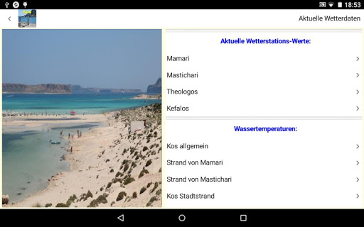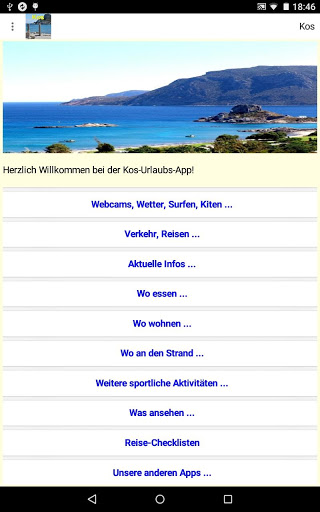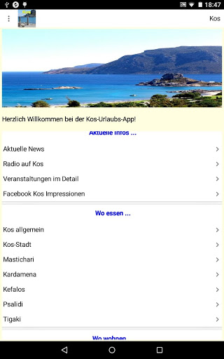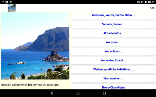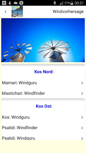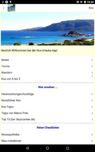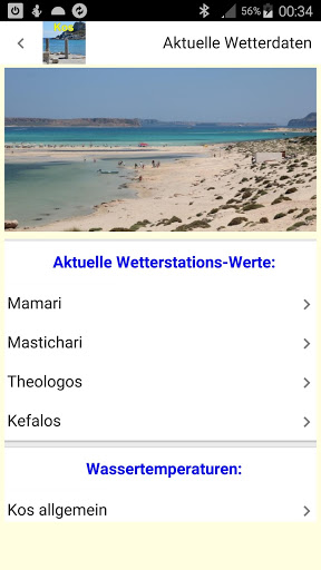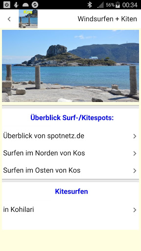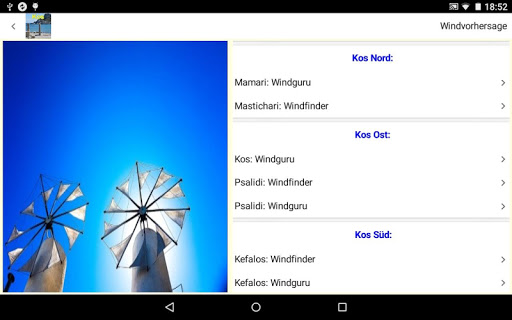 Aplikasi untuk pulau Kos di Mediterranean sangat sesuai untuk semua peminat sukan air (terutama pelayar, pelayan, peluncur angin) tetapi juga sangat berguna untuk "peminat sukan bukan air" di kalangan pelancong dan penduduk serta "pemuja matahari". Ini menawarkan maklumat yang luas mengenai cuaca, angin, pantai, tempat meluncur dan layang-layang, lalu lintas, restoran, tempat perkhemahan dan penginapan lain, acara, dan lain-lain. Aplikasi ini masih dikembangkan dan kami menantikan cadangan anda.