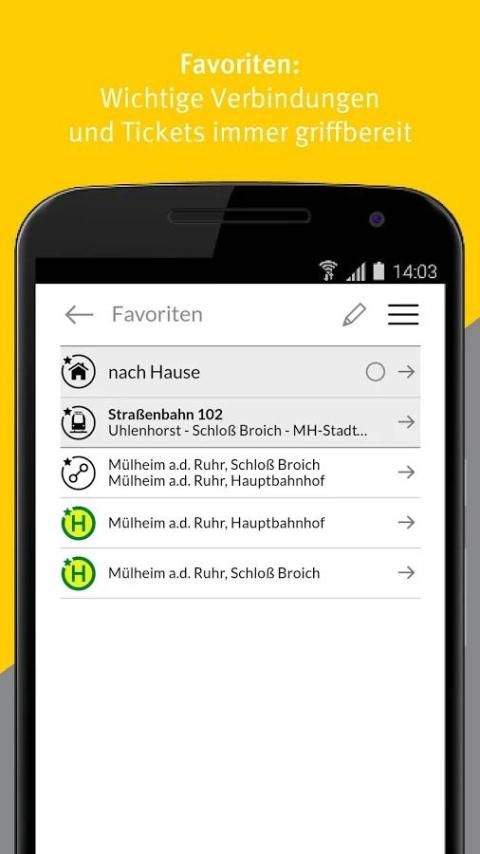 MVG अनुप्रयोग बसों की समय सारिणी के लिए लागू होता है और साथ ही Mülheim सार्वजनिक परिवहन गाड़ियों सभी यातायात समग्र Rhein-Ruhr (VRR) के लिए के रूप में। निश्चित रूप से एप्लिकेशन इच्छा भी आसन्न परिवहन संघों के लिंक प्रदर्शित करता है।