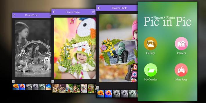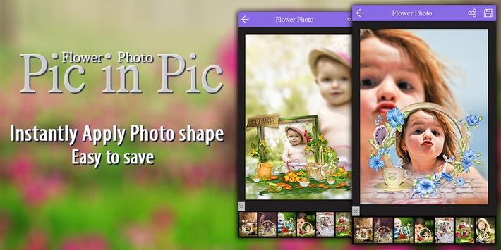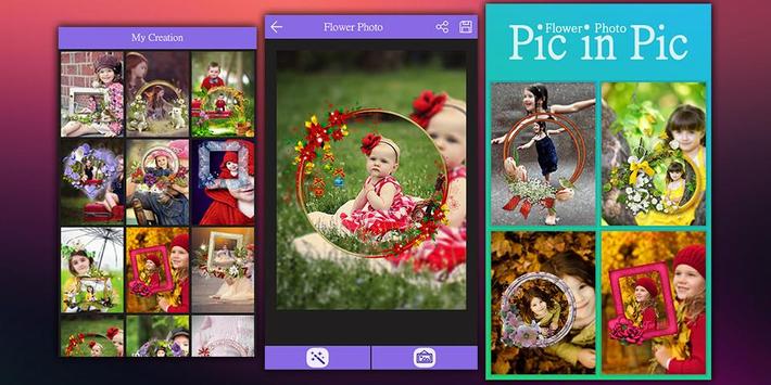 PIP Flower Photography application is the used for create the best look and amazing editing of your photo. In this application Pic In Pic so, your photo look amazing. In the application first of all select the photo from the gallery otherwise take the photo from the camera and set the photo in the flower frame. In this app the 50 flower photo frame available and the 30 photo filter available. You can save the photo in your phone memory and the share directly your friends and family member. In the my creation you can see the list of the photo you make in this application and also delete the photo from the application very easily.