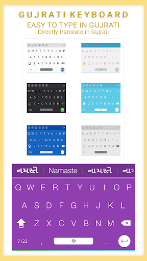 Gujarati keyboard is a Gujarati input method design to type Gujarati which helps in typing Gujarati language. Gujarati keyboard is a combination of keyboard themes with emoji that provide variety of Gujarati typing keyboard themes in different colours with Gujarati input method which allows user to Learn Gujarati.