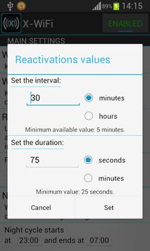 • Re-activations. Activate/Deactivate WiFi at a regular interval with a specific duration.