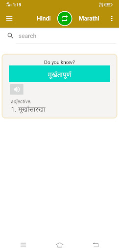 Hindi To Marathi Dictionary is the best Hindi To Marathi Dictionary where you can search any Hindi words for their exact meaning in Marathi language.